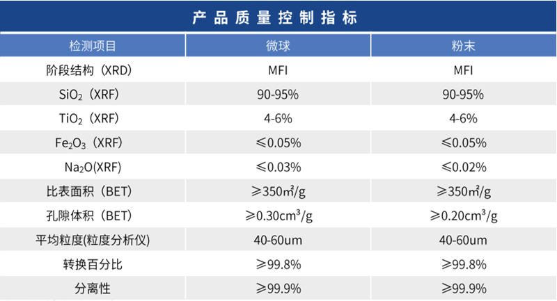 鈦硅分子篩是Ti原子部分取代硅鋁分子篩中的鋁原子而成,屬于ZSM-5系列沸石分子篩,具有MFI拓撲結構,由硅氧四面體和鈦氧四面體等初級結構單元,通過氧橋連接,構成了五元環(huán)的次級結構單元,并進一步形成三維微孔骨架,MFI分子篩具有二維的孔道結構,平行于a軸方向的十元環(huán)呈S型,孔徑為0.51nm×0.55nm,平行于b軸方向的十元環(huán)呈直線型,孔徑為0.54nm×0.56nm。本公司生產的鈦硅分子篩,平均粒徑50-60m,最小接近10m,最大小于105m,粒徑分布均勻。鈦硅分子篩可以作為催化氧化催化劑,廣泛應用于氧化反應、環(huán)氧化反應和胺肟化反應。例如,用于生產環(huán)氧丙烷的催化劑,用于生產環(huán)己酮肟的催化劑。